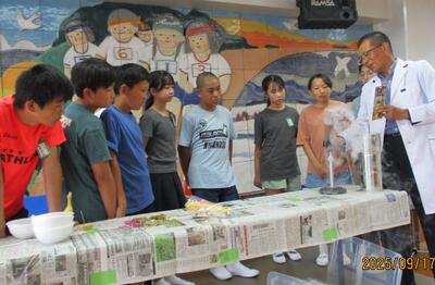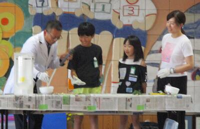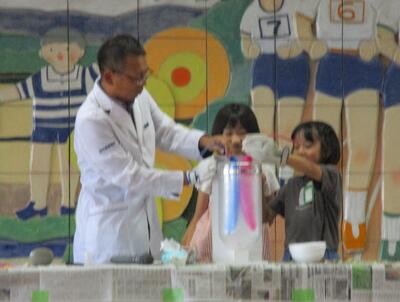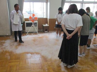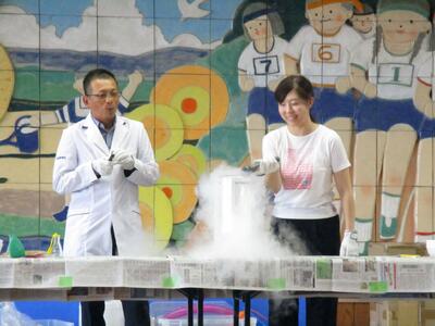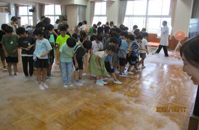 温度が変わることで物の様子がこんなにもかわることに驚き、歓声が上がっていました。とても楽しいサイエンスショ-でした。