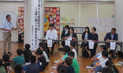 4~6年生の児童、保護者の方が参加しました。講師の先生は、株式会社スキットの小針先生です。演題は、「みんなで考えよう情報モラル」~じょうずに使って自分を守ろう~です。