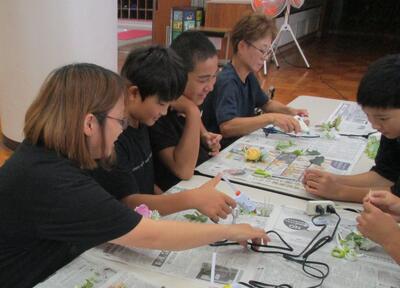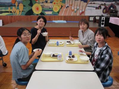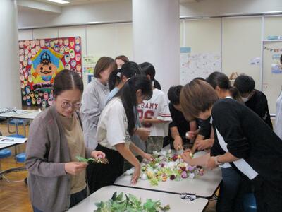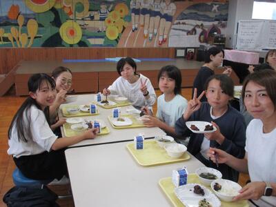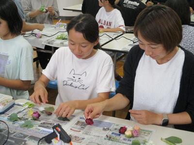 10月7日、6年生の親子給食、親子行事を行いました。卒業につけるコサ-ジュを親子で作製しました。