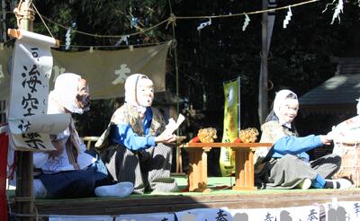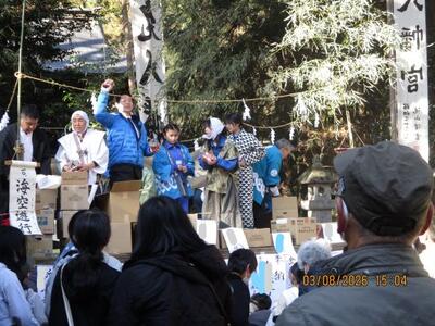 3月8日に那須神社において例大祭が開催され、郷土芸能クラブの児童5名が、「永代々神楽」の舞を披露しました。3日間神社社務所にて夜練習を行い、本番に臨み、練習の成果を発揮してしっかりと演じることができました。