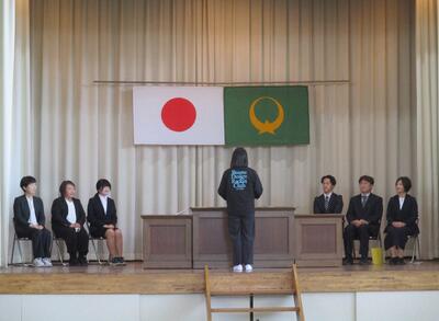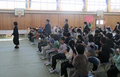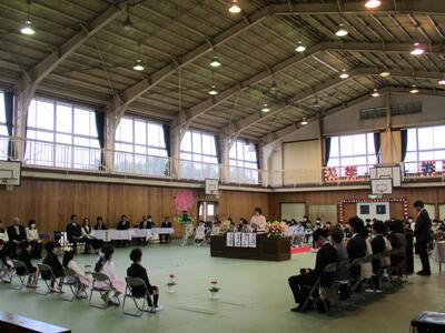 PTA会長様をはじめ6名の来賓の方々、保護者の皆様、全校児童みんなで新入生を迎え入れ、入学式が挙行されました。