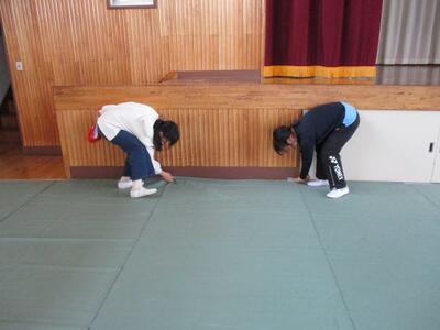 3月10日、6年生が感謝の気持ちを込めて、みんなで使う多目的ホ-ルをきれいに清掃してくれました。普段の清掃時間にはできないところを箒できれいに履き、床のワックスがけまでしてくれました。4年生も応援に来て、手伝ってくれました。