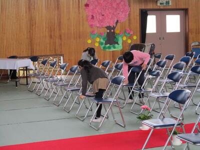 明日の卒業式準備が整いました。在校生、職員、みんなで6年生を心をこめて見送ります。