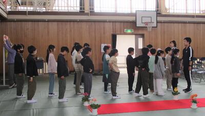 3月12日、全校生による卒業式全体練習を行いました。