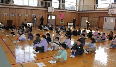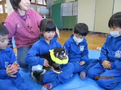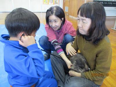 2月19日、1・2年生合同の生活科の学習で、獣医師との連携を図った体験活推進事業「ふれあい学習」を行いました。