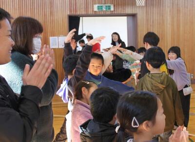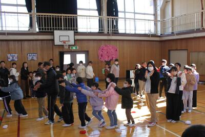 ムや○×クイズをしたりしまた。じゃんけん列車は、先生方も入り、1つの列車になりました。みんなで楽しい時間を過ごしました。