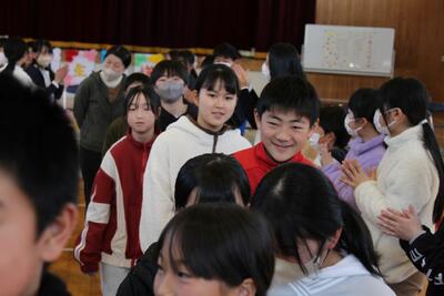 6年生の為に、5年生が企画し、劇をしたり、縦割り班でプレゼントを渡したりしました。また、6年生と歌を歌ったり伝言ゲ-
