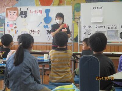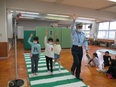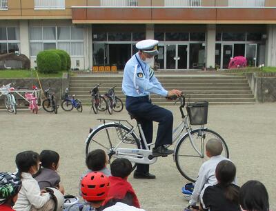 5月27日、市の危機管理課の交通教育指導員の方をお招 きし、交通安全教室を行いました。 交通安全講話 を聞き、1・2年生は、実際に横断歩道の渡り方を 練習したり、3~6年生は、自転車の安全な乗り方 を学習したりしました。児童は、真剣に話を聞き、 主体的に取り組んでいました。