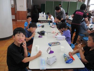 6月25・26日、奥沢小学校と合同で5年生の宿泊学習を実施しました。午前中は、那須登山、午後は、お面の絵付けをしました。
