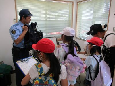 7月9日、防犯教室を実施しました。今回は、校内に突然不審者が侵入してきた場合、児童の安全を確保し、避難する対応の仕方の訓練を行いました。