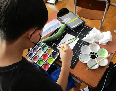 9月3日、3・4年生が「絵手紙教室」を行いました。