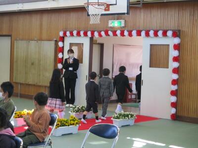 4月10日(水)に令和6年度金丸小学校入学式を行いました。今年度は、御来賓の方6名(PTA会長様、北金丸区長様、南金丸区長様、南部区長様、公民館長様、交通指導様)の御臨席のもと、2・3年生が参列し、温かな雰囲気の中での入学式となりました。
