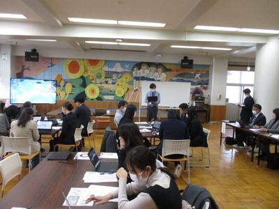 授業参観後、金田南中、奥沢小の先生方と授業研究会を行いました。