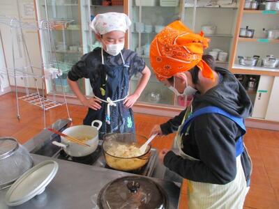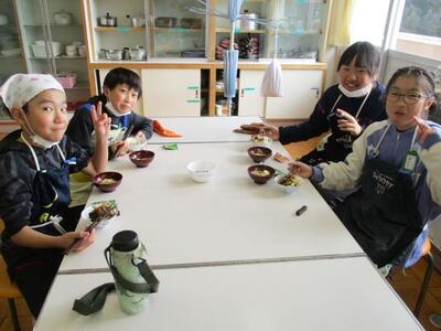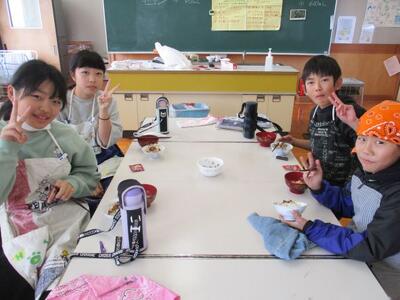5年生、調理実習 投稿: 校長 (12:06) 12月11日、5年生が調理実習をしました。今回は、ごはんと味噌汁です。味噌汁は、煮干しからだしをとって作りました。ご飯は火加減に注意ながらおいしく炊きあがりました。 Tweet -