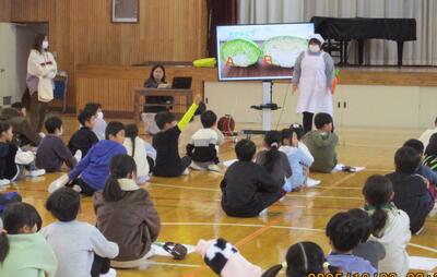 最後に、自分たちにできることを縦割り班で出し合い、発表し合いました。1年生も6年生の話を聞き、自分たちのできることを話し合いました。