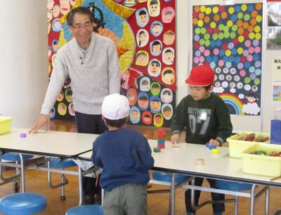 お手玉や竹馬、めんこやけん玉など、来校されたおじいちゃんやおかあさんたちに教えていただきながら楽しく遊びました。