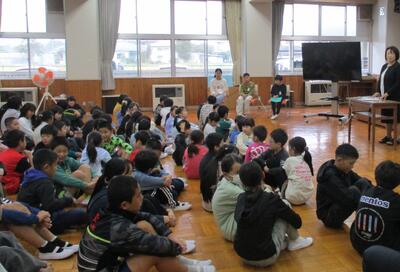 10月16日、後期がいよいよ始まりました。校長の話、児童代表挨拶、学習指導主任の先生の話がありました。後期は、「がんはることはかっこいい!」を合い言葉に色々な事にチャレンジします。78名一人一人が輝く金丸っ子を目指します。
